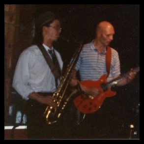 Anyway this band got pretty tight but I guess we got tired of playing gigs like the the redneck bar TR's in Concord for $30 apiece (if we were lucky), then humping gear at 3am. It could perhaps have become a great wedding band but in the end I think we only played one wedding gig. This tiny picture shows our farewell gig at the Starry Plough in Berkeley. If you look closely on the left you can see me and Mark Schleunes who later went on to form earRotator.